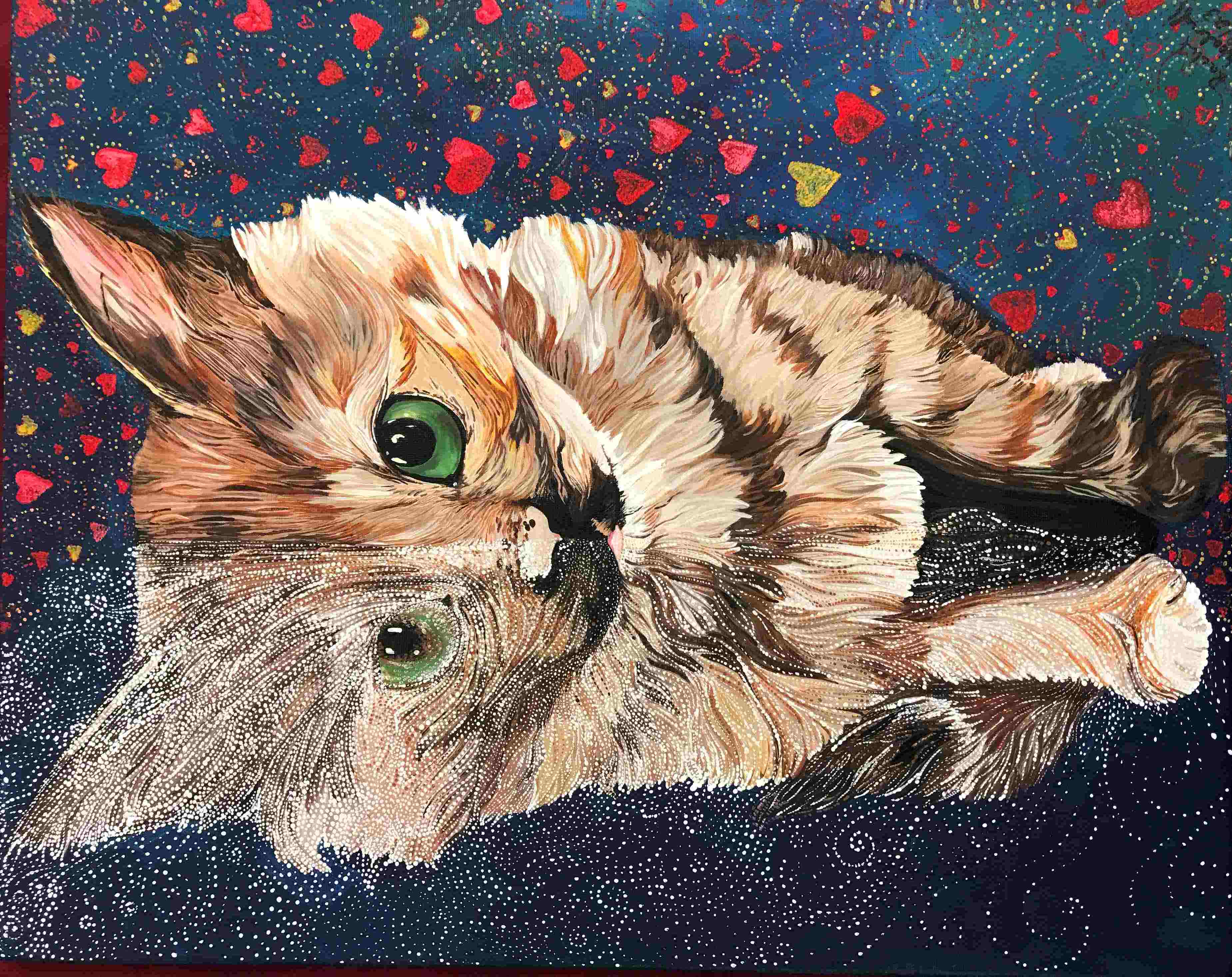This year's CAToberfest poster features the stunning artwork of PawWithCause artist Rachel Woodruff. Rachel is an avid fan of the Marvel Universe in which there is an event where the heroes get "blipped" by the villans. As she thinks about the lives of abandoned and forgotten animals, Rachel believes their lives should not be handled callously. The outcomes of being cared for are life-changing. Her imagery for Coco is that the left side is Coco in a life in which she is not saved. The right side is the love, care and intervention of humans making that "Cat-astrophic" change for Coco, gifting her life instead of blipping her and forgetting her.